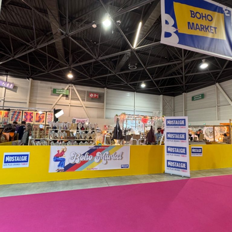 Nous créons un espace immersif de 350 m² au sein du hall 6 qui plonge les visiteurs dans un univers unique: vintage, créatif, design et bohème, un véritable retour dans le temps. Ce pop-up, “Boho Market”, se veut une expérience unique alliant nostalgie, créativité et artisanat, tout en mettant à l’honneur l’esprit vintage.